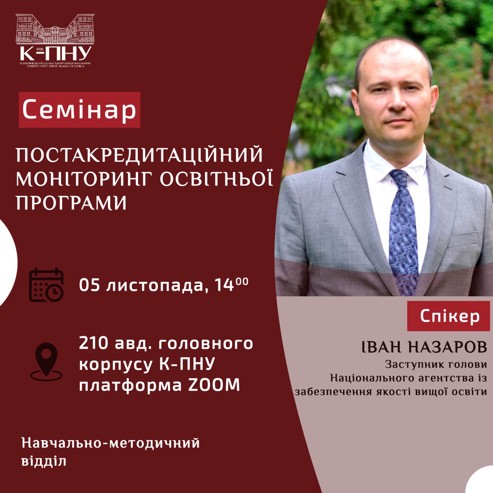 СЕМІНАР «ПОСТАКРЕДИТАЦІЙНИЙ МОНІТОРИНГ ОСВІТНЬОЇ ПРОГРАМИ» ВІД ІВАНА НАЗАРОВА