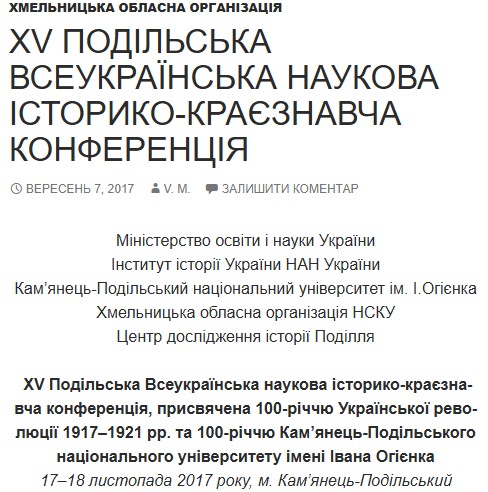 Міністерство освіти і науки України, Інститут історії України НАН України, Кам’янець-Поділський національний університет імені Івана Огієнка, Державний архів Хмельницької області, Державний історико-культурний запоЧитати далі…
