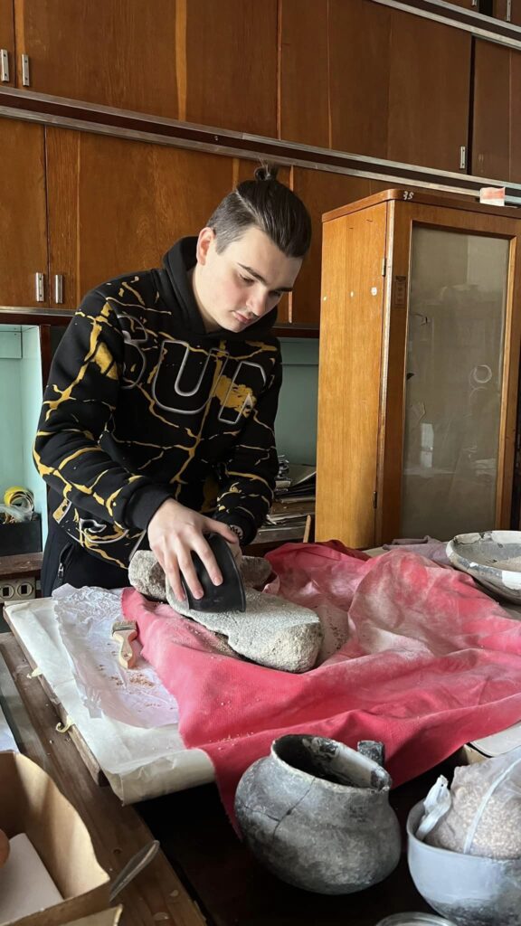15-16 лютого 2023 року студенти – члени археологічного гуртка (Ю. Павлинський, В. Свідніцька, І. Онуфрейко, В. Чорненький, Ю. Лисецька та ін.), під керівництвом завідувача науково-дослідної археологічної лабораторії, к.і.н., доцента кафедри археології, спеціальних історичних і правознавчих дисциплін В. А. Гуцала вирішили провели експеримент зі з’ясування окремих функціональних характеристик зернотерок часів бронзи. За мету ставилося встановити робочі характеристики кам’яної основи зернотерки та продуктивність розтирання зерна при використанні різних типів розтирачів за годину роботи. З цієї метою, було використано три типи зернотерок, з яких лише одна дала позитивний результат. Тобто, отримано 200 гр. борошна. Дві інші, згідно отриманих результатів, ймовірно, використовувалися для подріблення шамоту і для перетирання зерна на борошно виявилися непридатними. На черзі – приготування хліба ))).