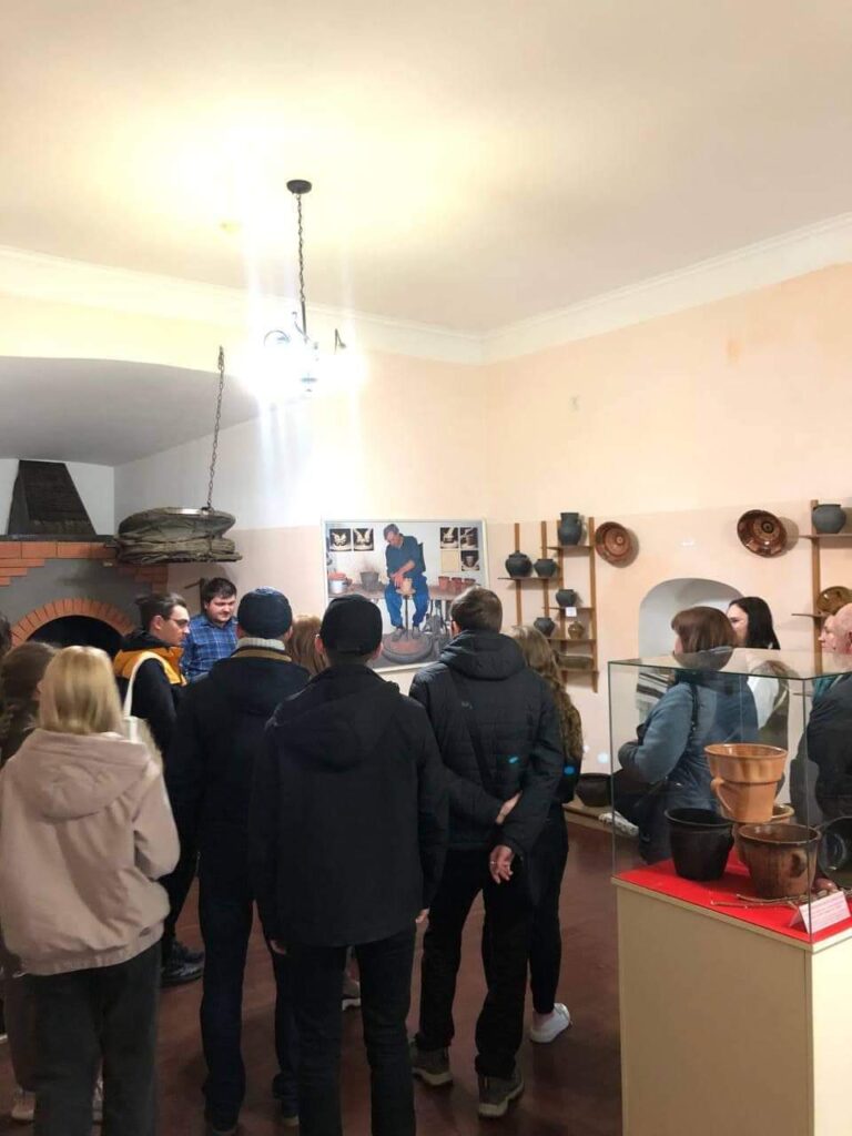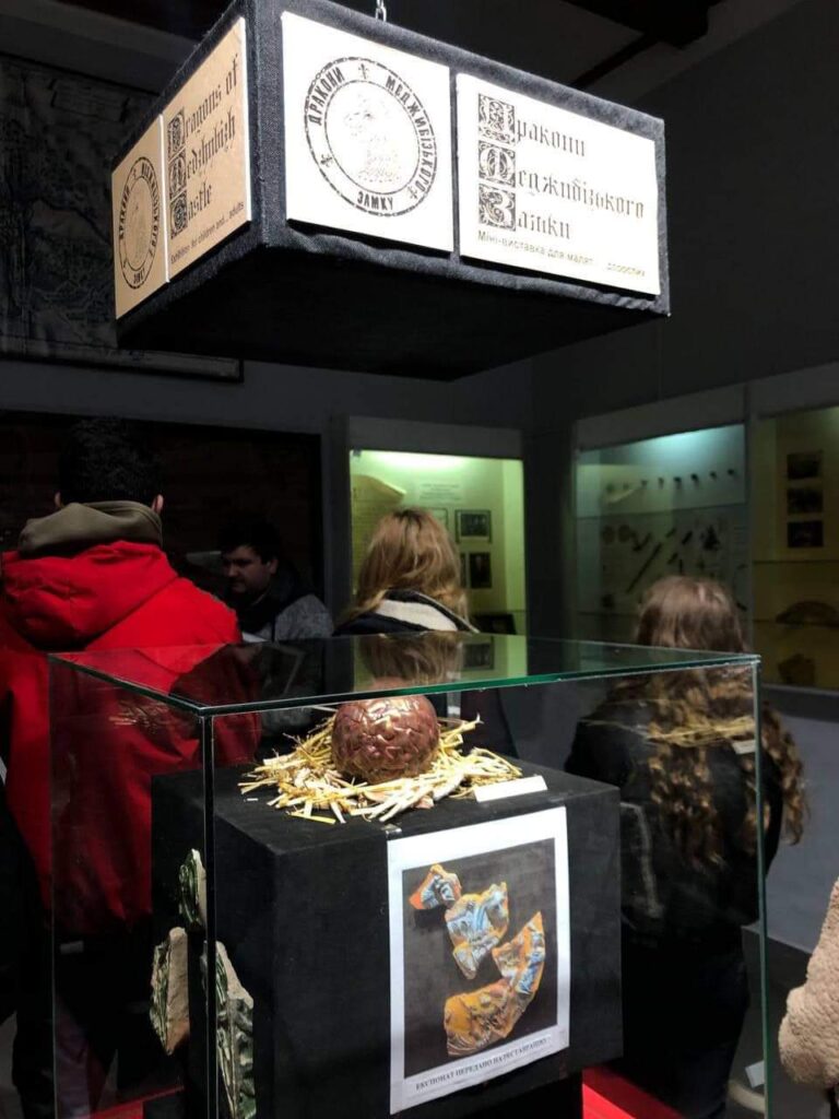Знайомство з історією Меджибізького замку та огляд його старожитностей розпочався в експозиціях музею. В ході розповіді наукового співробітника заповідника — Нагурного Є. О. студенти здійснили подорож в часі від нижнього палеоліту до сучасності. Продовження екскурсії відбулось у новоствореному маршруті до підземель фортеці. Спустившись на глибину 14 м від денної поверхні, студенти мали можливість наочно оглянути деякі конструктивні особливості замчища: систему в’їздної брами до вежі литовського періоду та барбакан, що справді вражає своїм задумом в плані оборонних функцій.