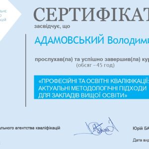ОНЛАЙН-КУРС «ПРОФЕСІЙНІ ТА ОСВІТНІ КВАЛІФІКАЦІЇ: АКТУАЛЬНІ МЕТОДИЧНІ ПІДХОДИ ДЛЯ ЗАКЛАДІВ ВИЩОЇ ОСВІТИ» ЗАВЕРШЕНО!