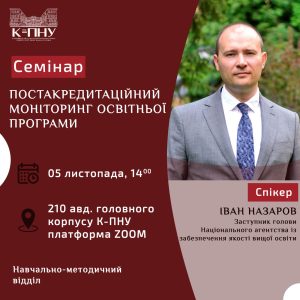 СЕМІНАР «ПОСТАКРЕДИТАЦІЙНИЙ МОНІТОРИНГ ОСВІТНЬОЇ ПРОГРАМИ» ВІД ІВАНА НАЗАРОВА